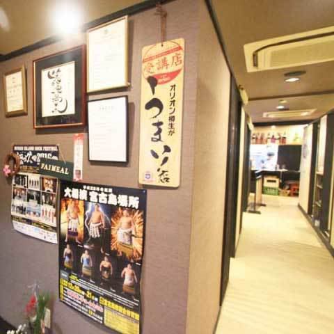 玄関入り口付近。廊下を挟んで左右に大小個室がございます。店内は静かで落ち着く大小個室がございます。