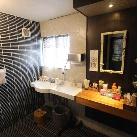 設計前から奇麗でアメニティがいっぱいのトイレをイメージしていました。歯ブラシや糸楊枝、マウスウォッシュ、女性用油取り紙や生理ナプキンなど少しでも快適なトイレを目指しています。