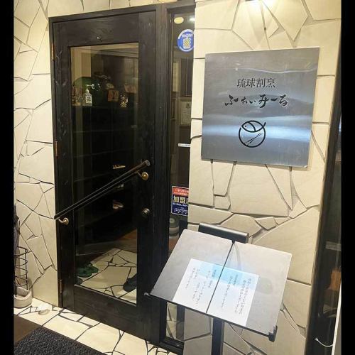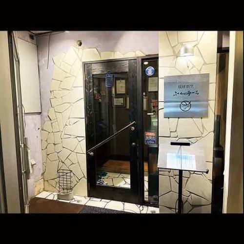 当店の玄関です。一階に面していないため階段を折り返さないと玄関は見えない造りとなっています。また近隣は飲み屋街で、地元の方も日頃使いというよりは接待やご商談にご利用頂いております。